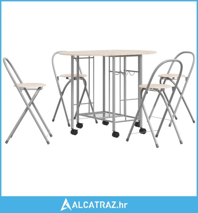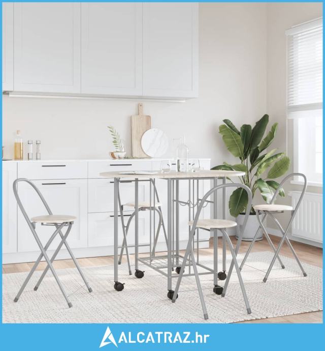 Plastificirani čelični okviri čine stol i stolice snažnim i čvrstim, a zahvaljujući laganoj konstrukciji, svi se predmeti lako premještaju. Izrađen od kvalitetnog MDF-a, blagovaonski set je izdržljiv i lako se čisti. Zahvaljujući sklopivom dizajnu, stolice se mogu pohraniti ispod sklopivog stola kako biste uštedjeli prostor za pohranu kada nisu u uporabi, čineći ovaj set idealnim za male kuhinje i blagovaonice.