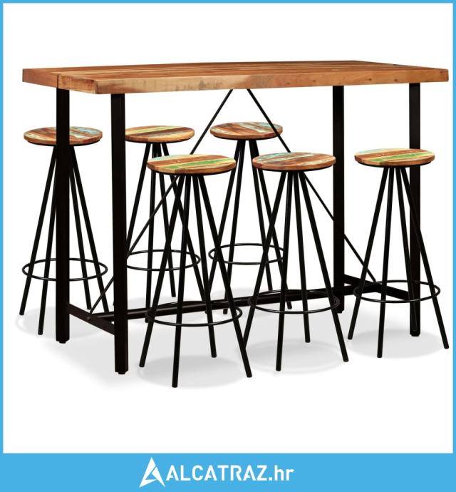 7-dijelni barski set od masivnog bagremovog drva i obnovljenog drva -