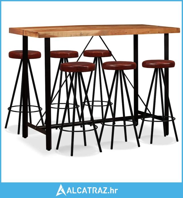 7-dijelni barski set od masivnog bagremovog drva i prave kože - NOVO