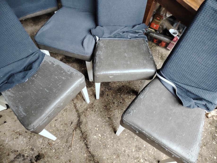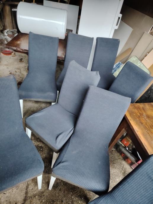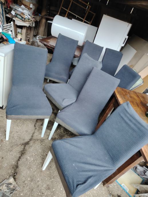 Prodajem 8 stolica sa navlakom, nisu rasklimane, eko koža je ispucala na pojedinim dijelovima.