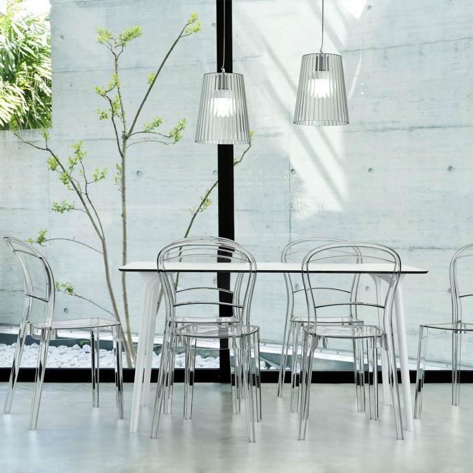 • stolica (prozirno sjedište + kromirane noge) — 175 €