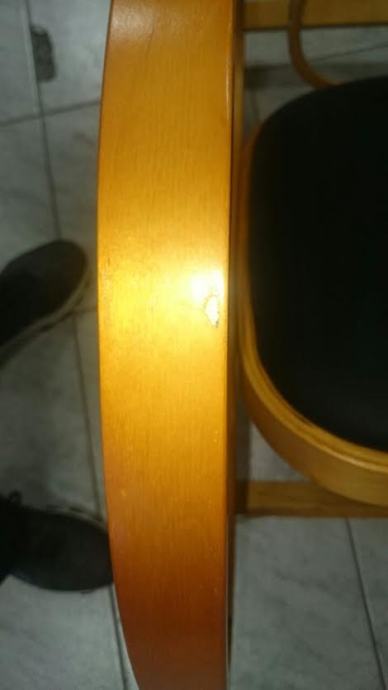Stolica ima sitna oštećenja na drvenom okviru koja je moguće prefarbati (prikazano na slikama u oglasu).