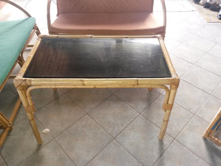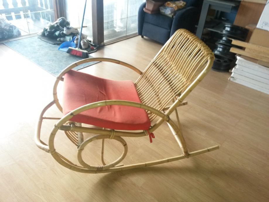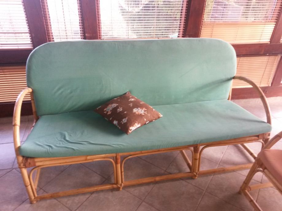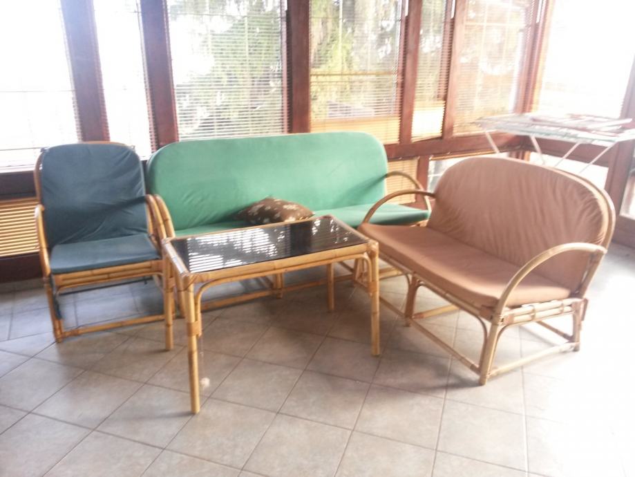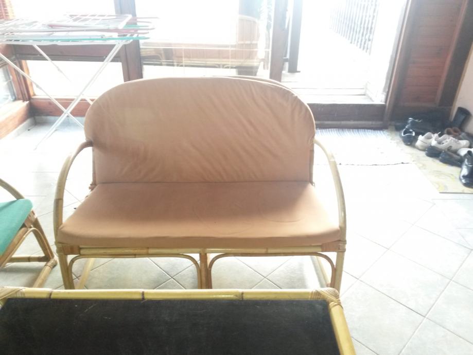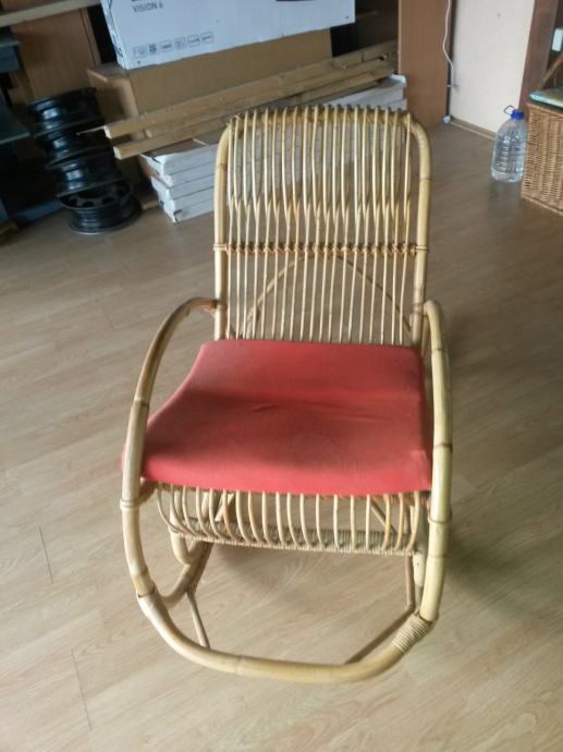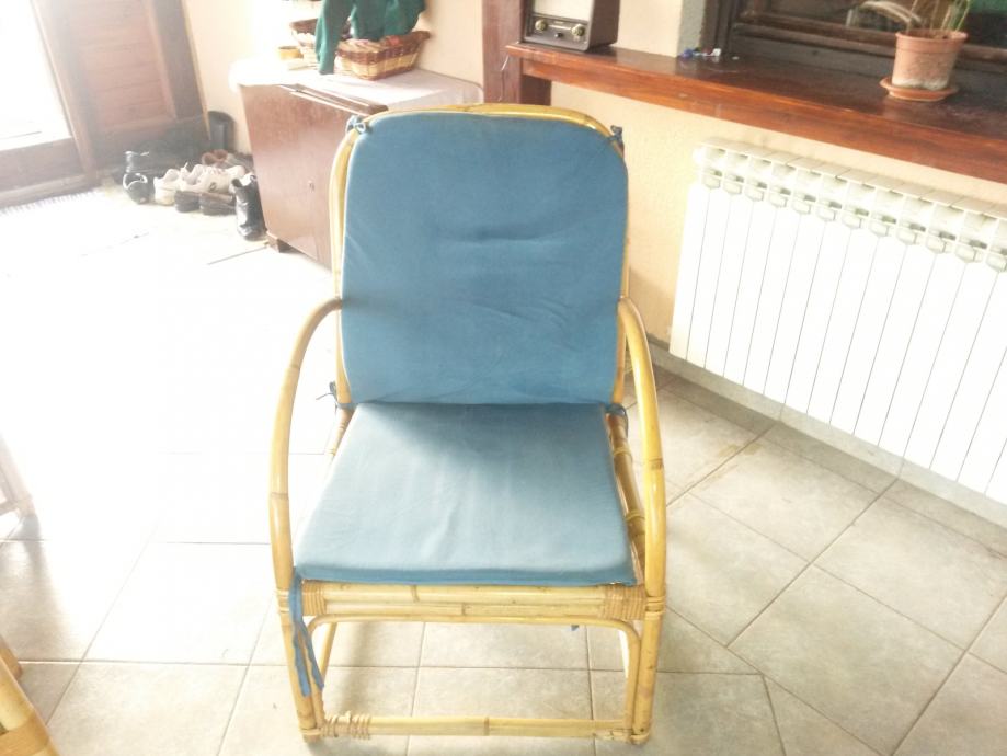 Bambus garnitura, trosjed, fotelja, fotelja za ljuljanje i stolić. Nikad nije stajalo vani na suncu ili kiši, sačuvano.