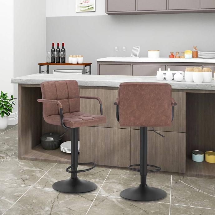 Ova bar stolica s naslonom izrađena je s udobnim sjedištem obloženim lako održivom umjetnom kožom i visokokvalitetnom pjenom visoke gustoće. Metalni okvir premazan je bojom, otporan je na hrđu i stabilan, s maksimalnim opterećenjem do 120 kg.