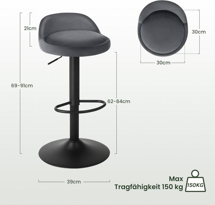 JEDNOSTAVNO SASTAVLJANJE, LAKO I LAKO Pružamo ilustrirane detaljne upute za sastavljanje i potreban alat. Stolicu možete jednostavno sastaviti. Dimenzije: ukupna visina: 69-91 cm, visina sjedala: 62-84 cm, visina naslona: 21 cm