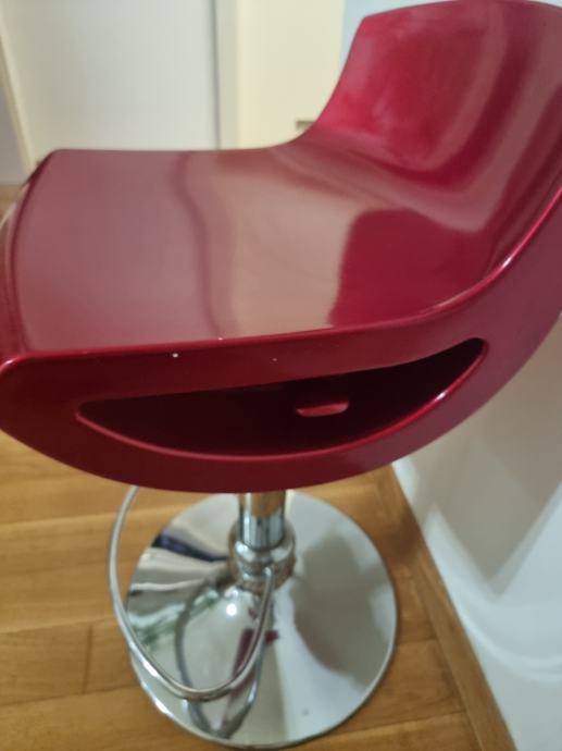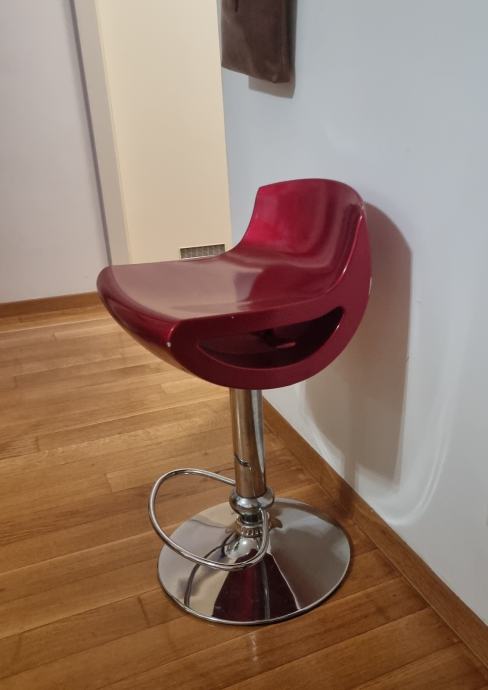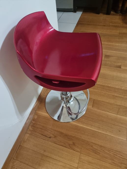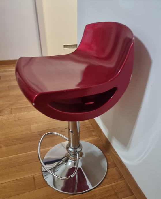 Barska stolica na lift od dizajnera Barhockera, izrazito sačuvana, metalik crvena boja, prikladna za poslovne prostore, dnevni boravak kao i ukras. 0916969069
