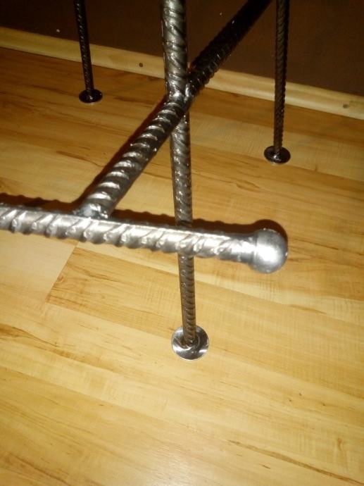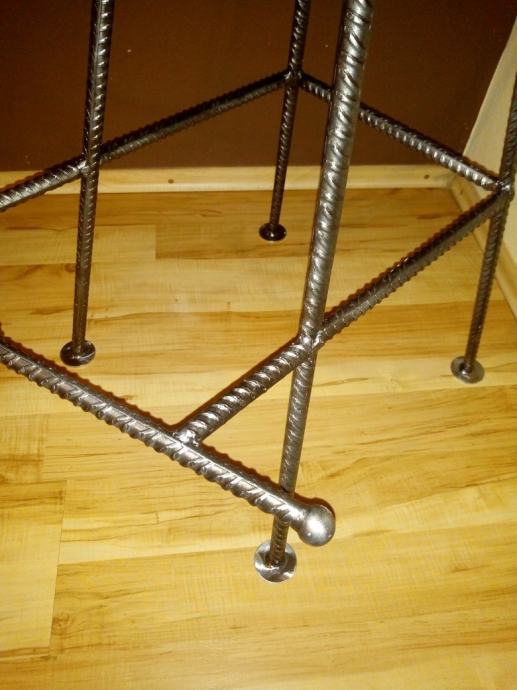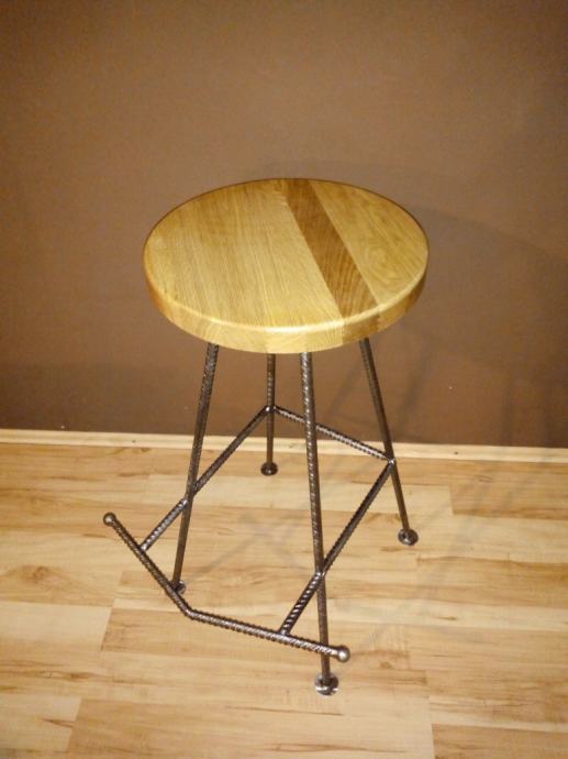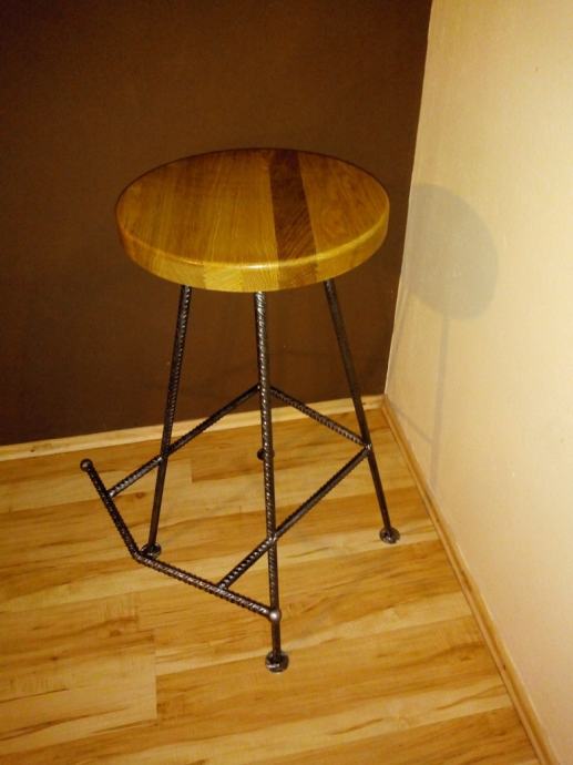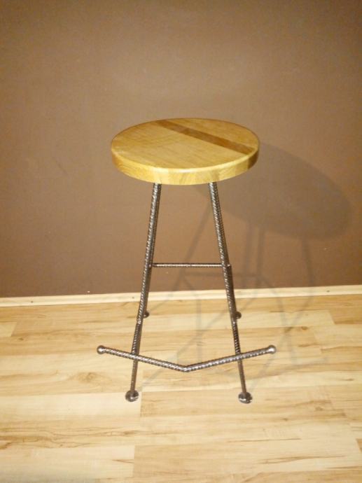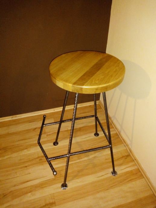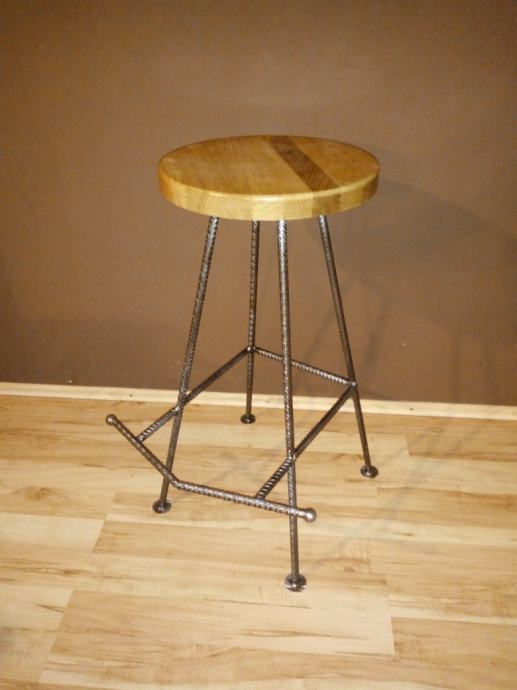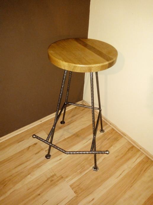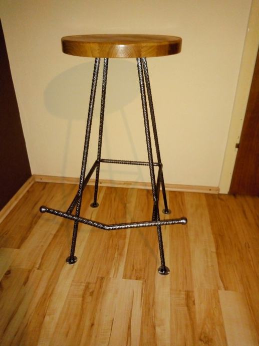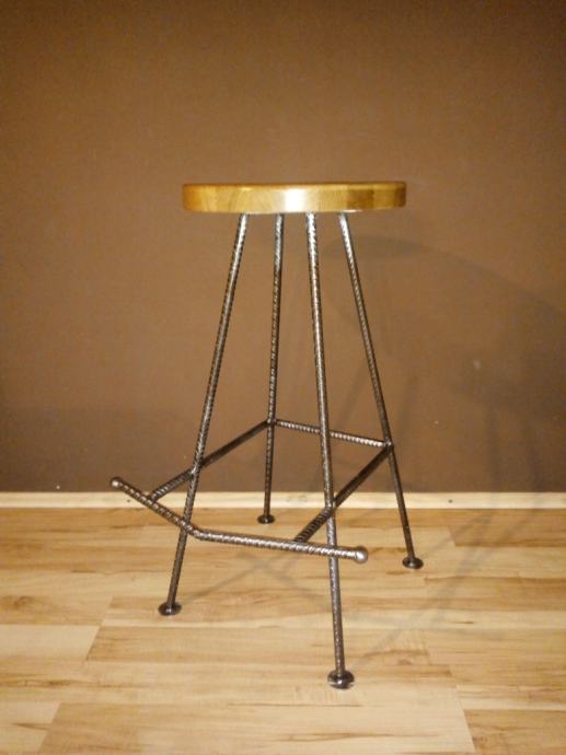 Barske stolice izrađene od betonskog rebrastog željeza. Lakirane dvokomponentnim bezbojnim lakom. Drvena sjedalica od hrasta,jasena ili jele.