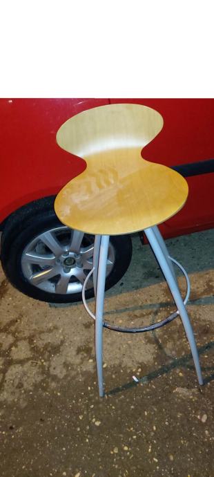 Barska drvena stolica sa naslonom i metalnim postoljem