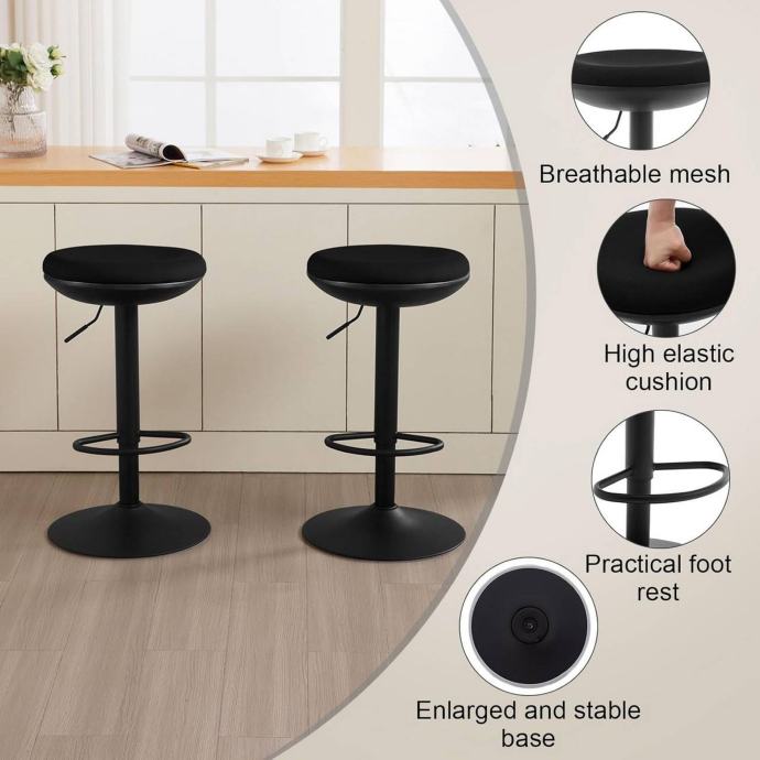 Ova moderna barska stolica bez naslona pruža udobnost i prozračnost zahvaljujući mrežastom sjedalu od elastičnog materijala i visokog gustog pjenastog punjenja. Konkavni oblik sjedala prati prirodnu krivulju kukova, ravnomjerno raspoređuje težinu i omogućava dugotrajno ugodno sjedenje.