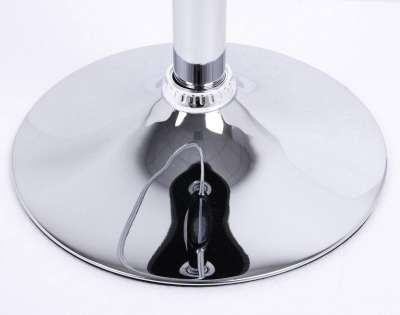 Stolica je stabilna i sigurna jer ima široku metalnu bazu s protukliznim prstenom koji sprječava klizanje, ogrebotine po podu i neugodno klimanje tijekom okretanja. Konstrukcija od kromiranog metala i izdržljive umjetne kože čini stolicu robusnom, otpornom na habanje i koroziju, a maksimalna nosivost iznosi 120 kg.