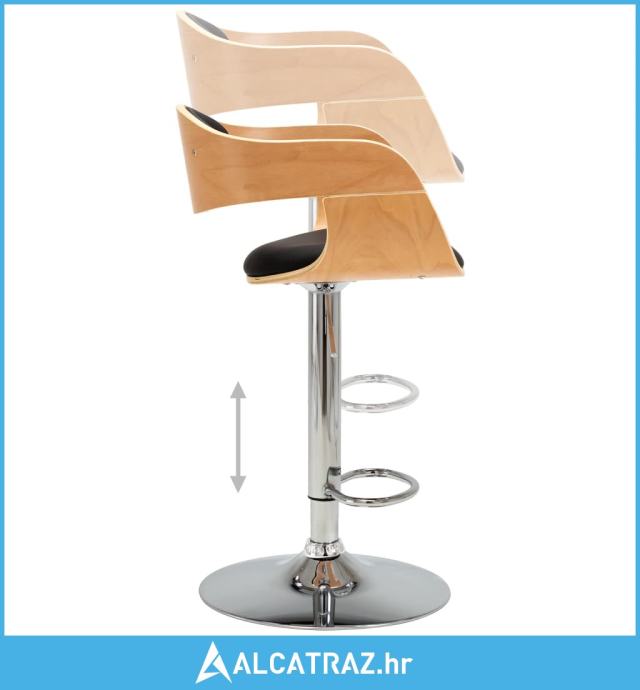 Stolica je presvučena umjetnom kožom koja se lako čisti i pruža najbolju moguću udobnost. Okvir od savijenog drva dodaje jedinstvenu ljepotu i stil. Kromirana metalna baza osigurava visoku čvrstoću, dok ugrađeni oslonac za noge donosi dodatni užitak pri sjedenju. Ergonomski dizajn čini stolicu vrlo udobnom za višesatno sjedenje. Uz to, zahvaljujući plinskom mehanizmu za podizanje, ova barska stolica može se podesiti po visini i savršen je dodatak svakom funkcionalnom baru ili blagovaonici.