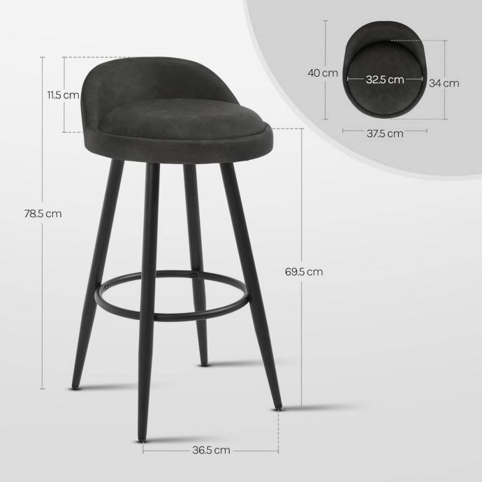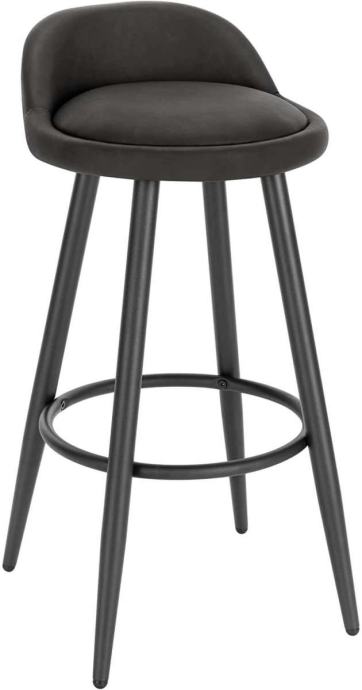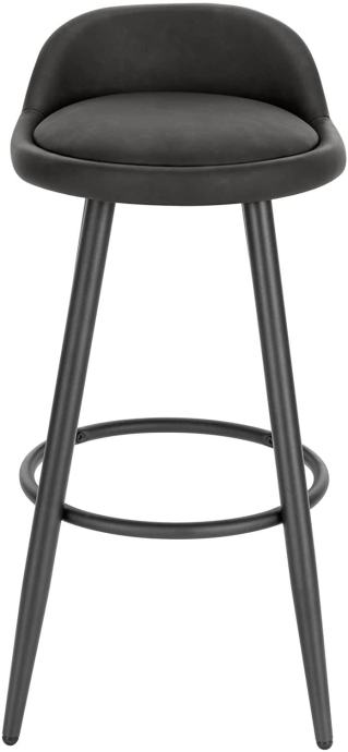 Ova barska stolica kombinira stabilnu i robusnu konstrukciju s elegantnim dizajnom pogodnim za svaki interijer. Stolica ima drvenu ploču u sjedalu, a pojačane metalne noge s okruglim naslonom za noge pružaju dodatnu sigurnost i stabilnost. Maksimalno opterećenje stolice je do 120 kg, a crni mat premaz čini je otpornom na hrđu. Moderan i jednostavan izgled, tamna faux leather presvlaka te mala naslonjača čine ovu stolici pogodnom za klasične i suvremene interijere.