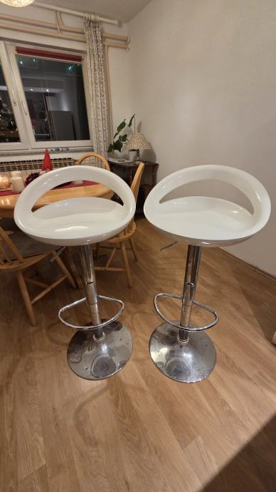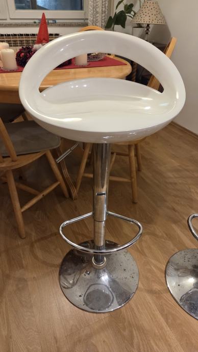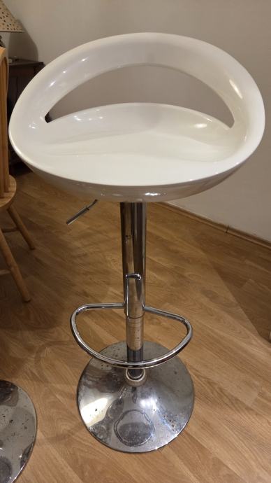 Prodajem dvije barske stolice Twist 3 46x44x98,5 cm, bijela plastika, podesiva visina...rabljene i ispravne...jedno sjedište ogrebano(vidljivo na foto)...PRODAJA U KOMPLETU!!!!...cijena 49 € za 2 kom...osobno preuzimanje