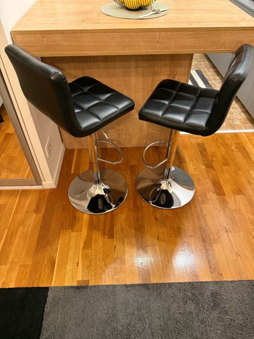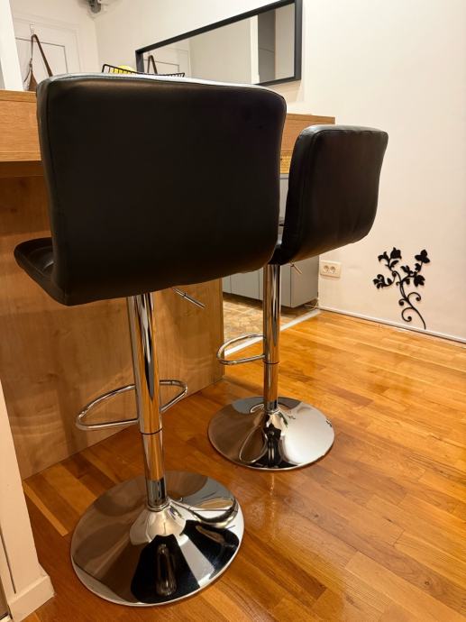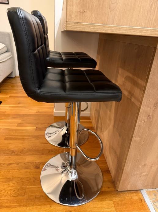 Prodajem 2 barske stolice, crna umjetna koža, podesive visine. ( jedna ima sitno ostecenje sa lijeve strane, vidljivo na prilozenoj fotografiji)