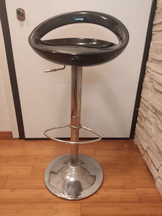 Barske stolice crne boje, mogu se spuštati i podizati. Imaju tragove korištenja. Prodaju se 3 stolice. Navedena cijena se odnosi za sve tri stolice zajedno.