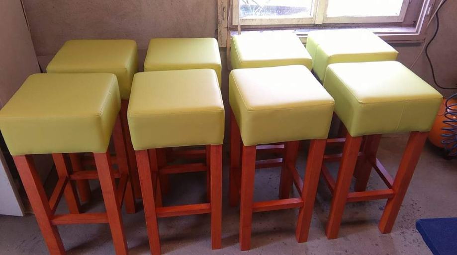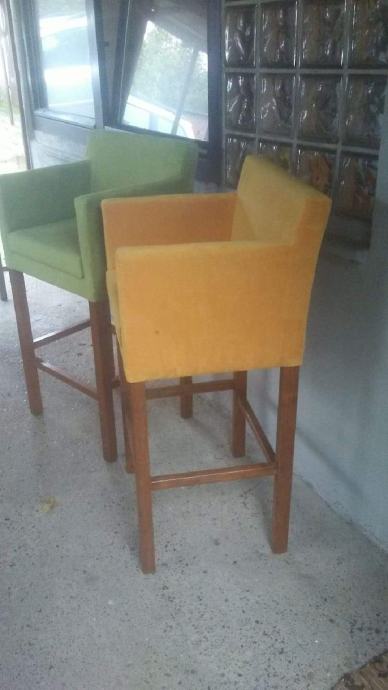 Prodajem barske stolice za ugostiteljstvo ili dom.. Stolice su rađene od punog drveta, stolice su nove.. Boja nogu i materijala po želji kupca.. BARSKA STOLICA SA NASLONOM I RUKONASLONOM 90 €... BARSKA STOLICA SA NASLONOM 70 €.. BARSKA STOLICA BEZ NASLONA 60 €..FOTELJA 90 € .. DVOSJED 160€. Kontakt 098-985-0283 Pogledajte sve moje ostale oglase stiskom na SVI OGLASI OVOG OGLAŠIVAČA