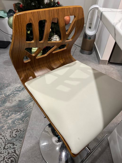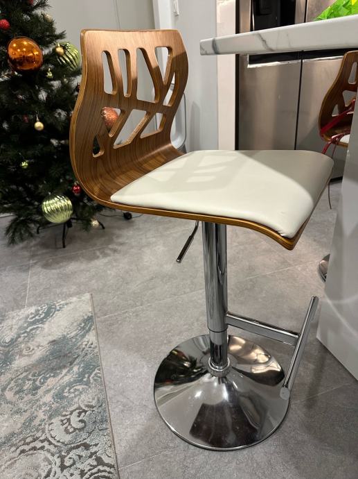 Stolice imaju kožno sjedište, drveni naslon modernog dizajna i stabilnu metalnu nogu s mogućnošću podešavanja visine.