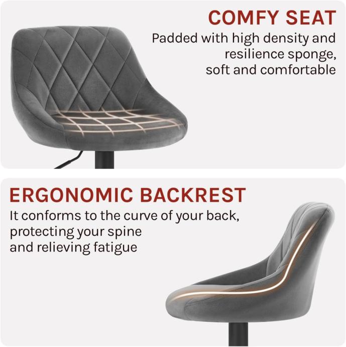 UDOBNE I ERGONOMSKE BARSKE STOLICE: Imajući na umu ergonomski princip, WOLTU moderni set od 2 barske stolice ima metalni oslonac za noge i udobno i mekano baršunasto sjedalo presvučeno visokogustoćom i otpornom spužvom, što vam omogućuje ublažavanje pritiska na leđa i noge te opuštanje mišića.