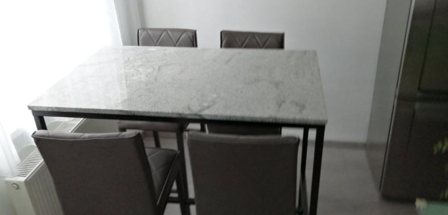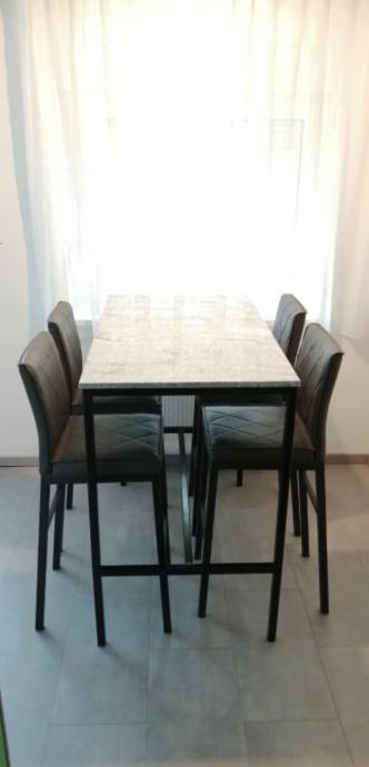 Prodajemo barski stol izrađen od pravog mramora i 4 barske stolice. Dimenzije stola 120 x 70 cm. Rađen po mjeri.