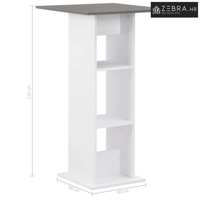 Elegantni dizajn visokog stola čini ga bezvremenskim dodatkom za vaš životni prostor. Zahvaljujući strukturi od konstruiranog drva, stol za pub vrlo je izdržljiv, stabilan i jednostavan za čišćenje. Osim toga, ispod ploče stola nalaze se male police za spremanje sitnih predmeta.