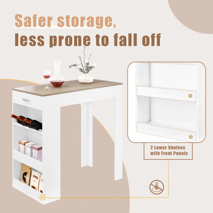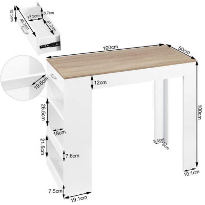 Barski stol, bistro stol s 1 ladicom, 3 police, s vinskim stalcima, kuhinjski stol, za bar, kuhinju, dnevni boravak, blagovaonicu (rustikalna smeđa, centimetri, 100 cm, 50 cm, 100 cm)