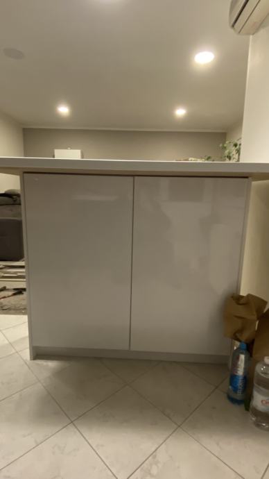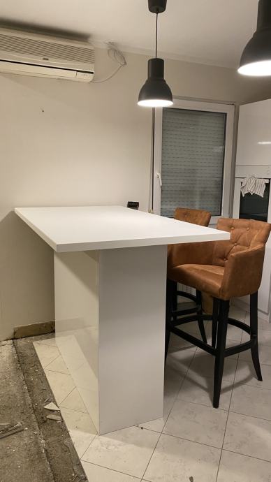 Barski stol ručno rađen po mjeri. Ispod radne ploče je ormarić (visoki sjaj).