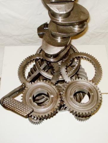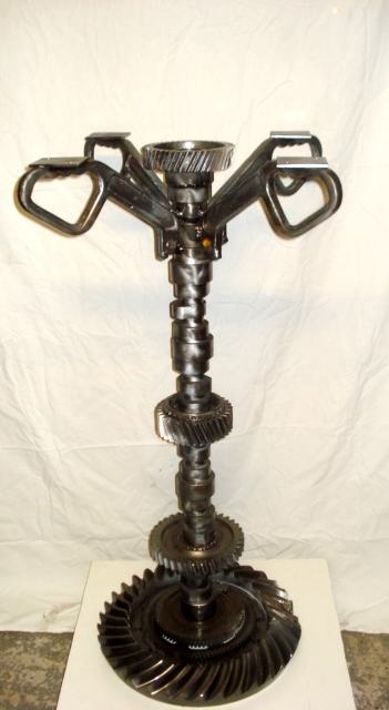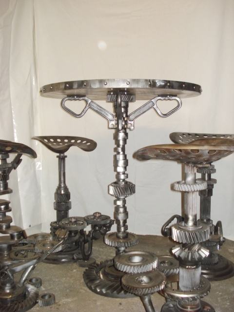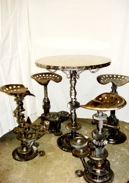 Dijelovi motora , zupčanici, radilice i sl. ukomponirani su u unikatne komade namještaja
