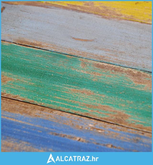 Barske stolice izrađene su od masivnog obnovljenog drva koje potječe od starih ribarskih brodova i mogu se sastojati od različitih vrsta drva kao što su drvo mindi (američka tuja), bagrem, obalni hibiskus itd. To znači da obnovljeno drvo zadržava karakteristike tih različitih vrsta drva. Obnovljeno drvo već je ostarjelo, oštećeno vremenom i osušeno pa se ne skuplja ni savija. Znakovi habanja, vidljiva struktura godova, kao i sloj stare boje također daju setu vlastitu povijest i jedinstven izgled. Svaki korak procesa izgradnje izveden je s najvećom pažnjom, bilo da se radi o poliranju, bojenju ili lakiranju. Barske stolice lako se sastavljaju. Isporuka uključuje 2 barske stolice.