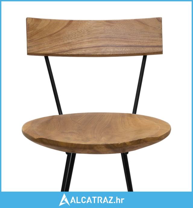 Izrađen od izuzetno izdržljive masivne tikovine, naš komad namještaja osušen je, posušen u peći i zatim fino izbrušen kako bi dobio vrlo gladak izgled. Tikovina je poznata po izuzetnoj snazi, zbog čega je savršen izbor za dugotrajan komad namještaja. Uz to, noge su napravljene od izdržljivog željeza, što osigurava njihovu čvrstoću i lako čišćenje. Isporuka uključuje 2 barska stolca.