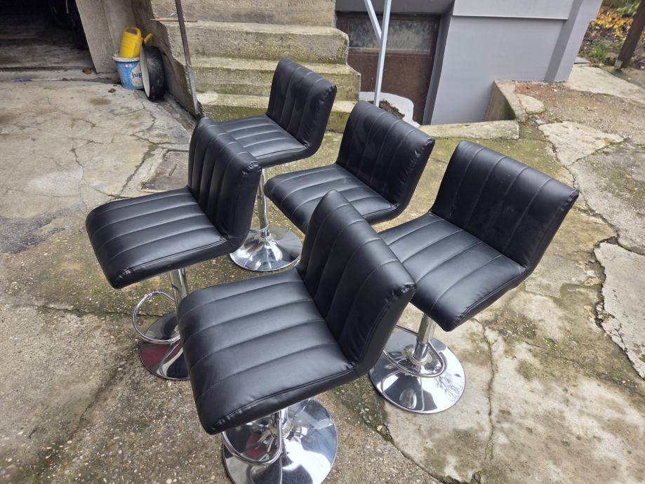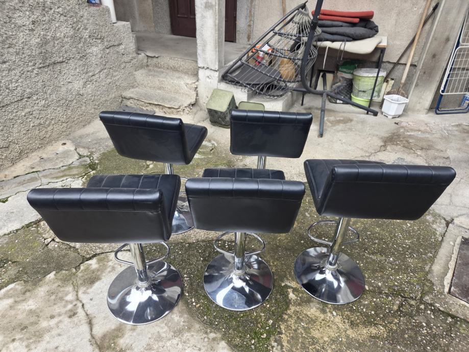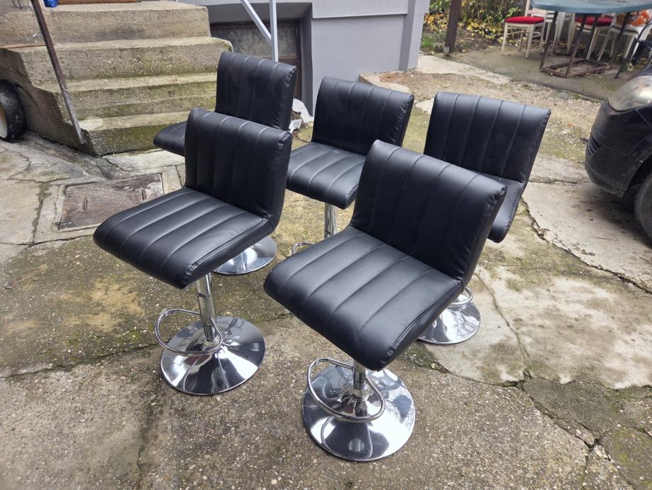 Barski stolci koristeni godinu dana,crna imaticija koze,5 komada