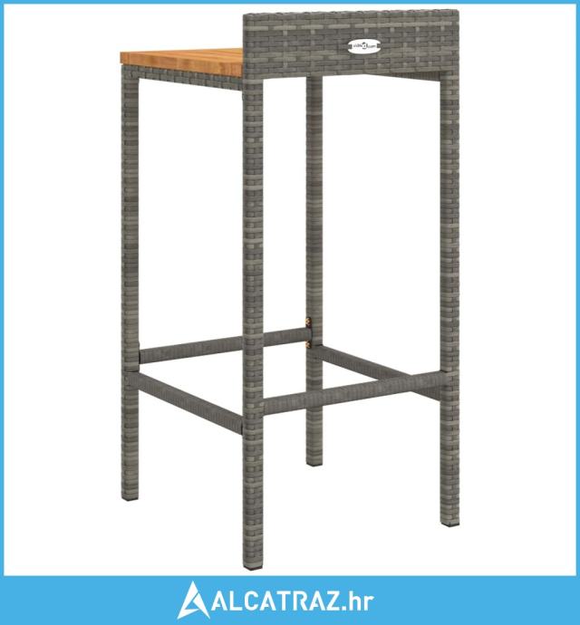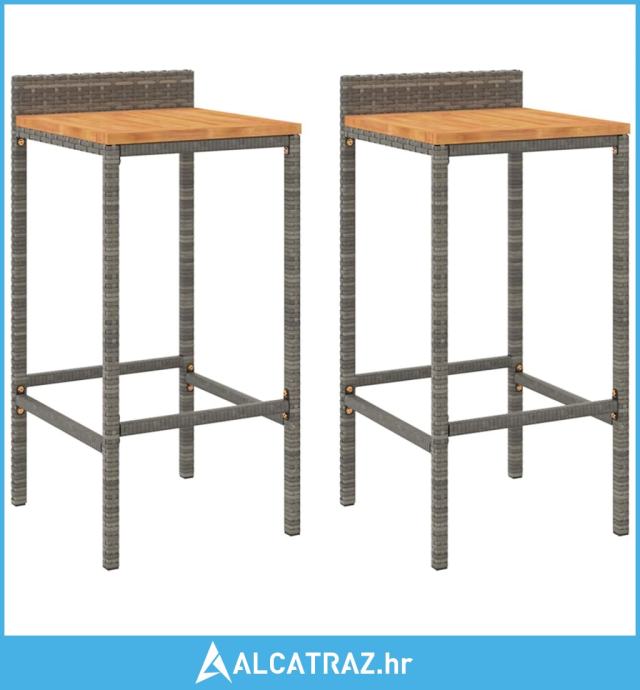 Barski stolci sivi 2 kom poliratan i masivno bagremovo drvo - NOVO