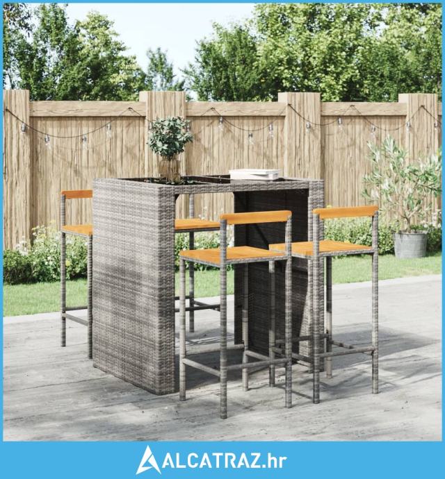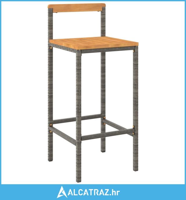 Barski stolci sivi 4 kom poliratan i masivno bagremovo drvo - NOVO