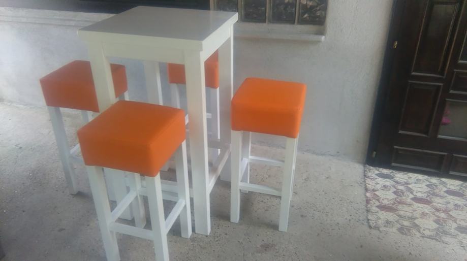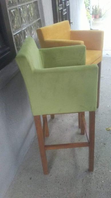 Prodajem barske stolice za ugostiteljstvo ili dom.. Stolice su rađene od punog drveta, stolice su nove.. Boja nogu i materijala po želji kupca.. BARSKA STOLICA SA NASLONOM I RUKONASLONOM 90 €.. BARSKA STOLICA SA NASLONOM 70 €.. BARSKA STOLICA BEZ NASLONA 60 €..FOTELJA 90 €.. DVOSJED 160 €.BARSKI STOL 60×60 150€.. Kontakt 098-985-0283 Pogledajte sve moje ostale oglase stiskom na SVI OGLASI OVOG OGLAŠIVAČA