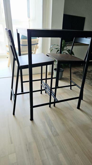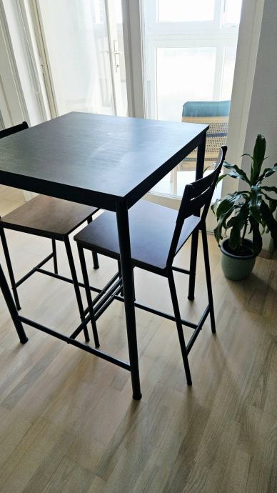 Prodajem barski stol i dvije stolice, idealno za manji stan. Dimenzije stola 67 x 67 cm, visina 92 cm, u odličnom stanju. Osobno preuzimanje.
