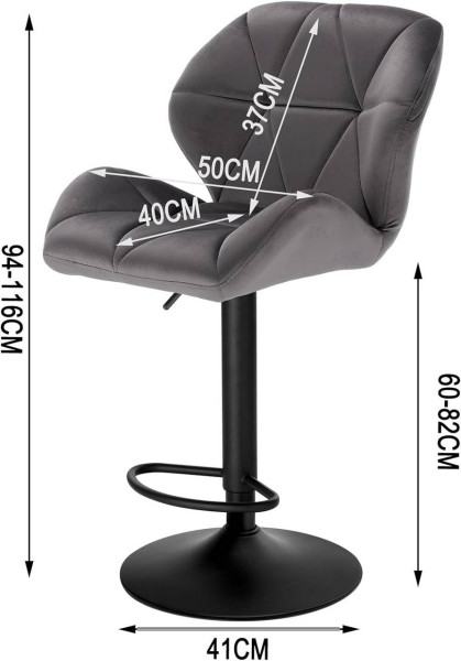 Izdržljiv i svilenkasti plišani materijal otporan je na habanje i kidanje, čime se produžuje dugotrajnost stolice. Crna mat metalna baza je otporna na hrđu i koroziju, stabilna i dovoljno čvrsta da izdrži do 120 kg.