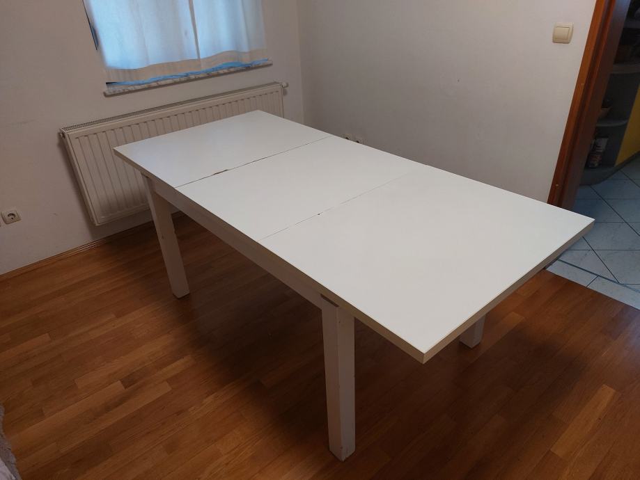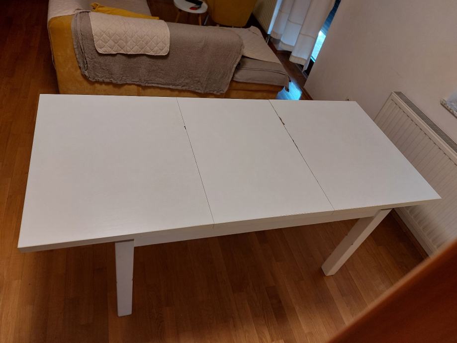 Prodajem bijeli stol. Stol je izuzetno kvalitetan,čvrst. Masivniji,kompaktan,stabilan.