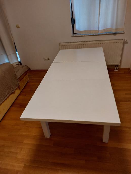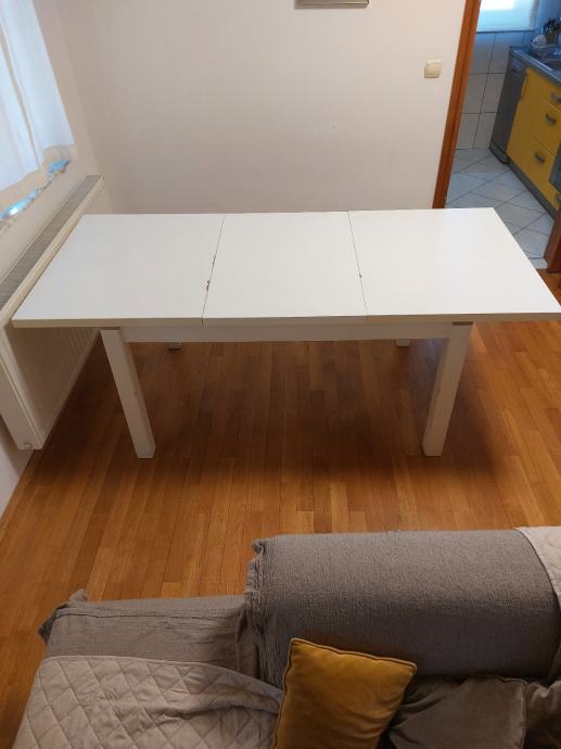 Stol je u nerazvucenom stanju 140,kad se razvuče ima 200cm.