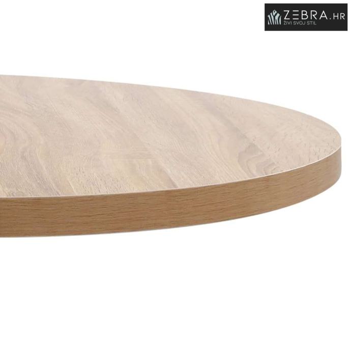 Stolna ploča napravljena je od MDF-a s uzorkom godova i poduprta je čeličnom nogom i postoljem. Lako se čisti običnom vlažnom krpom. Upotrijebite ga kao zasebni komad u svom interijeru, restoranu, kafiću ili baru.