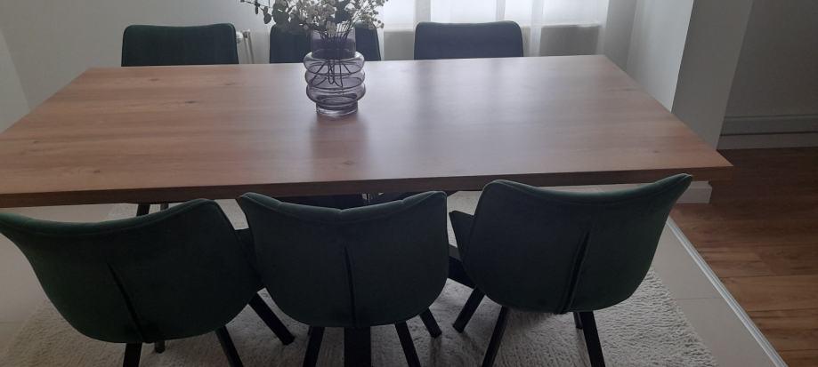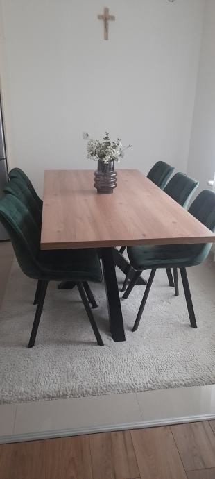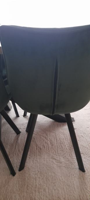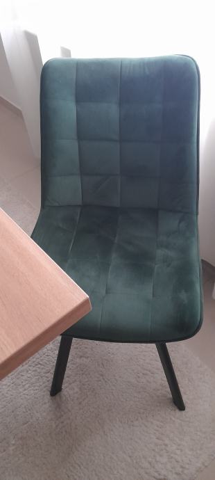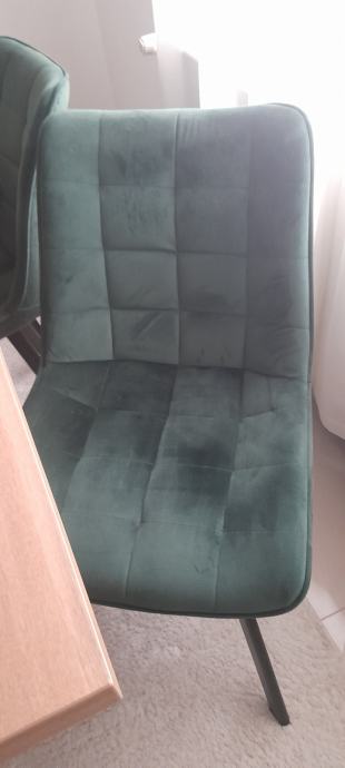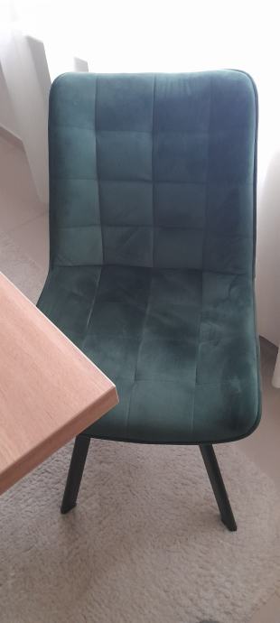 Prodajem 6 kom stolica tamnozeleni pliš,široke metalne nogice,korištene vrlo malo u odličnom stanju kao novo što se može vidjeti iz priloženih fotografija.Cijena se odnosi za komplet od 6 stolica