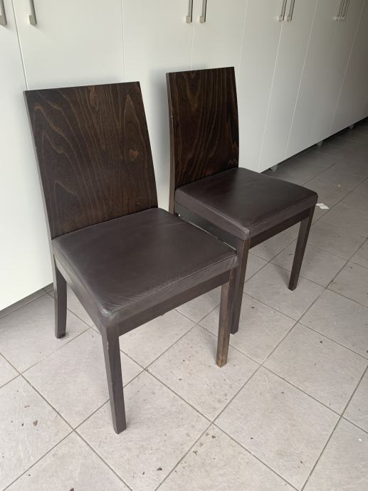 Prodajem 6 blagavaonskih stolica, wenge boja, drvene sa sjedištem tapeciranim u eko kožu.