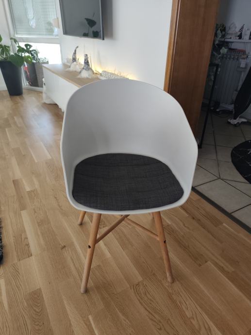 Prodajem 4 blagavaonske stolice bijele boje sa drvenim nogama i podstavljenim sjedištem. Bez tragova korištenja. Cijena za komplet je 120 eura.