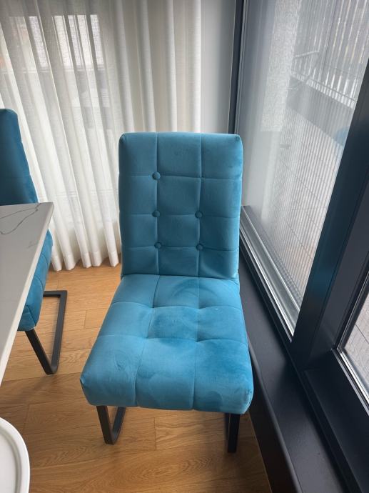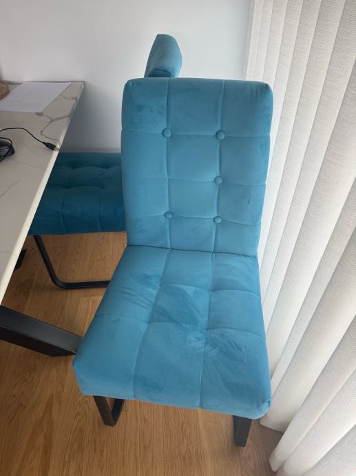Stolice koje su koristene godinu i pol dana. Dobro su ocuvane, ali na 3 stolice fali po jedan gumb kao sto se vidi i na slikama. 6 je stolica i u kompletu se prodaju po 50€ svaka, ukoliko netko zeli po jednu cijena je 60€.