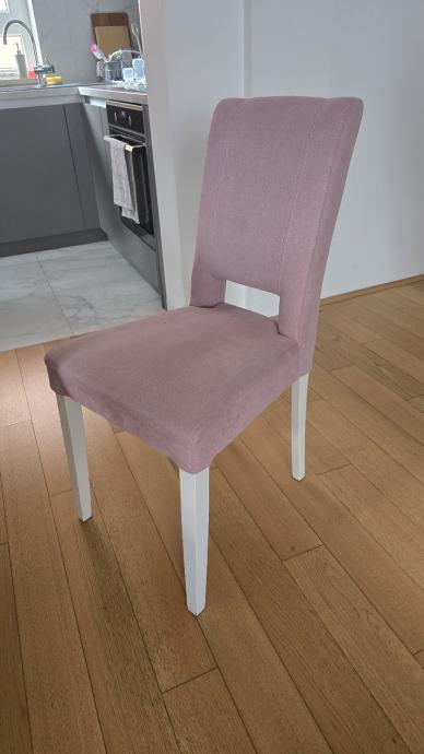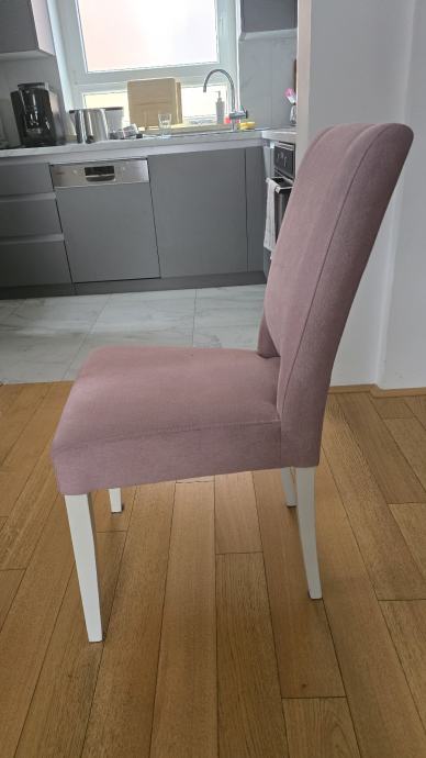 Prodajem blagavaonske stolice 6komada,prljavo roze boje, tapecirane sa bijelim drvenim nogama, koristene 5godina, kupljene u primi.