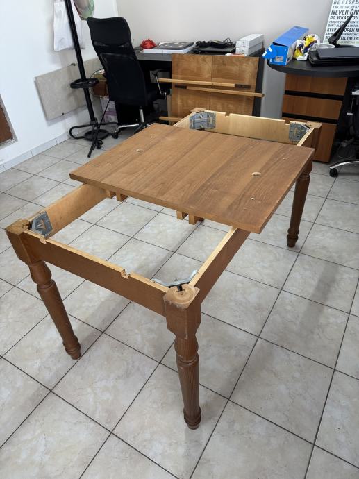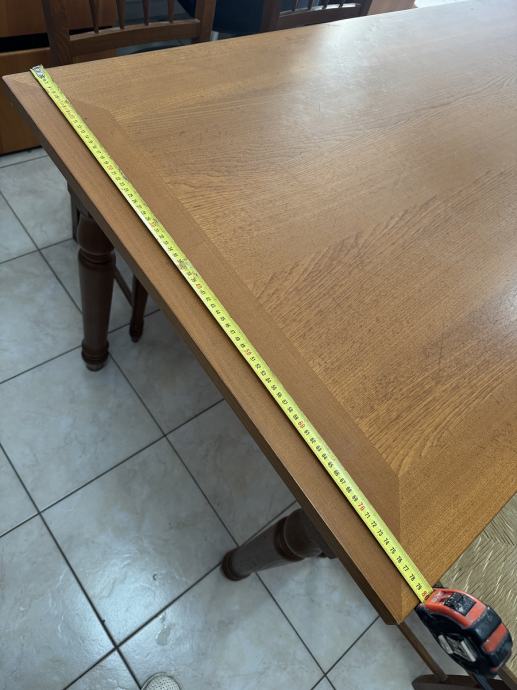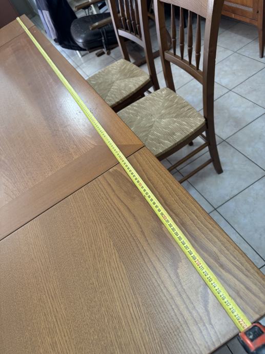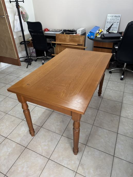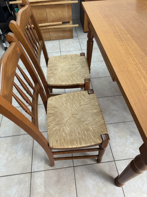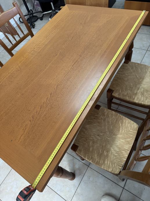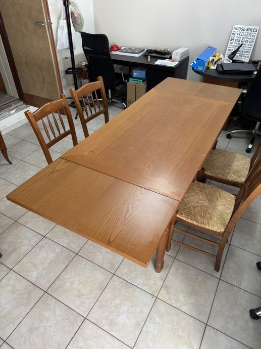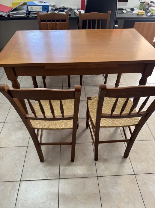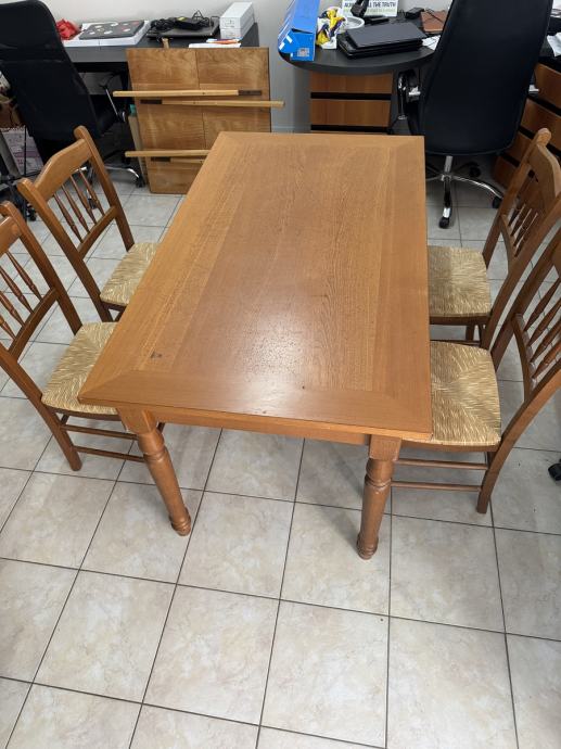 Blagavaonski drveni stol i 4 stolica. dimenzije stola D140 x Š80x V80cm, moze se proširiti za 80 cm, ukupno D220 cm x Š80 cm.