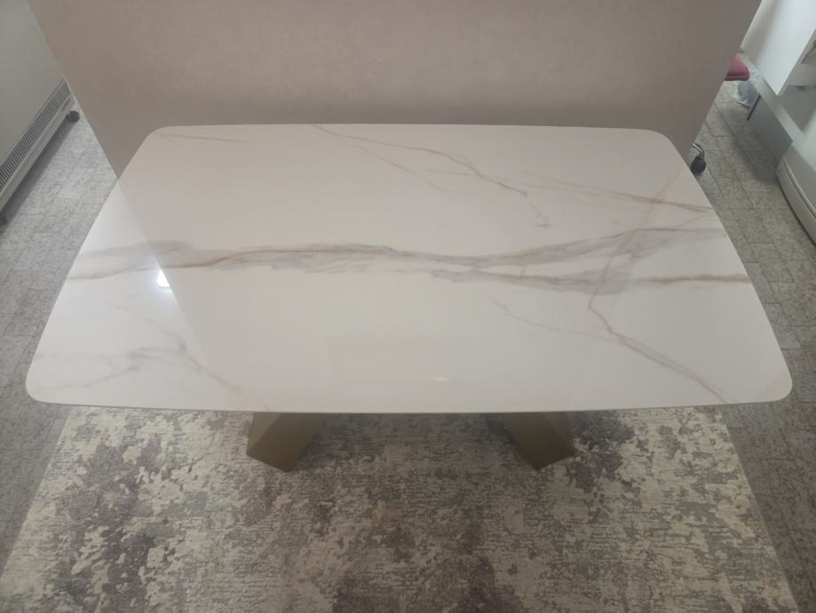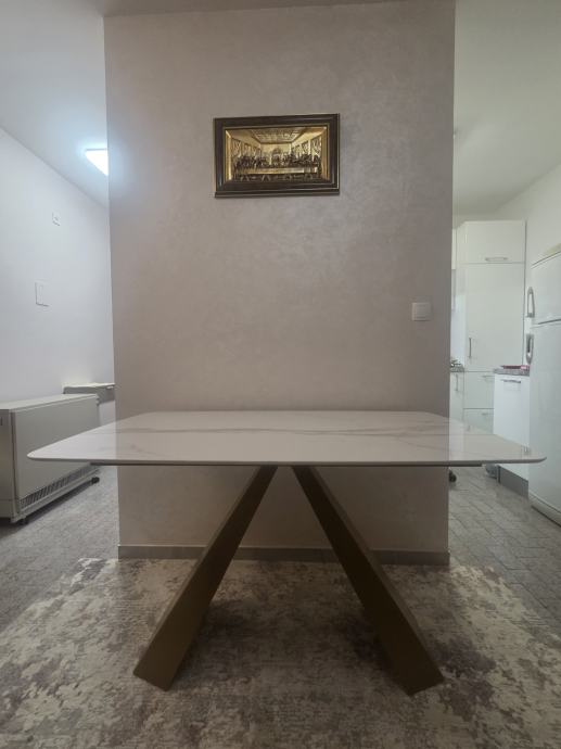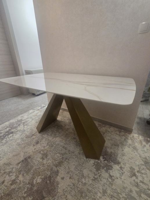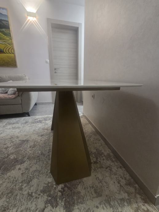 Prodajem novi blagavaonski stol s keramičkom pločom - CALACATA LAHNE GOLDEN debljine 12mm. Dimenzija ploče je 130x80cm.