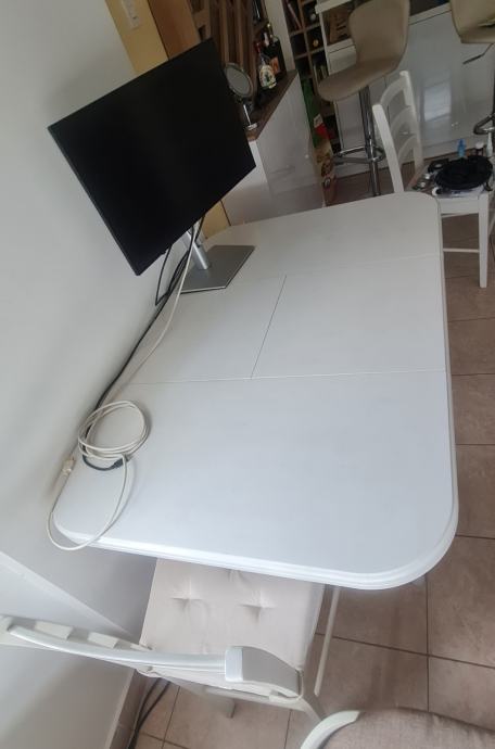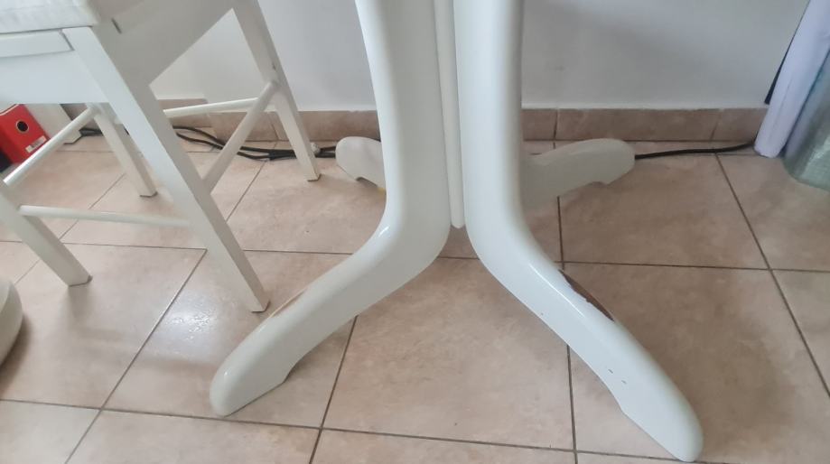 Prodajem rasklopni blagavaonski stol u kompletu s tri stolice. Cijena nije fiksna. Na nogama vidljivi tragovi od korištenja. Dimenzije (rasklopljene) 120x80.
