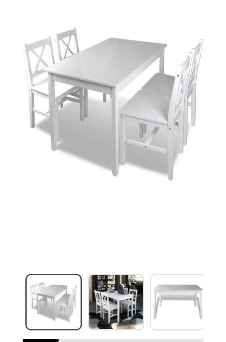 Ovaj blagovaonski set je izrađen od punog drveta s atraktivnom završnicom za prefinjeni izgled koji će vam sigurno služiti puno godina. Isporuka uključuje stol i 4 stolice.