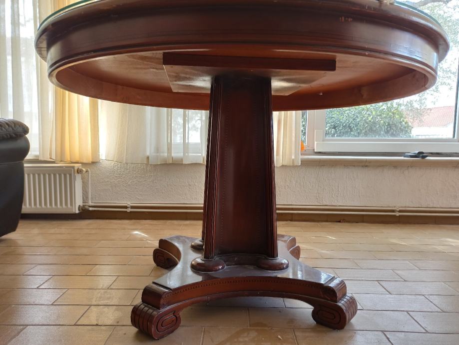 Antinki okrugli stol sa staklenom plocom - 118cm promjer, 80cm visina