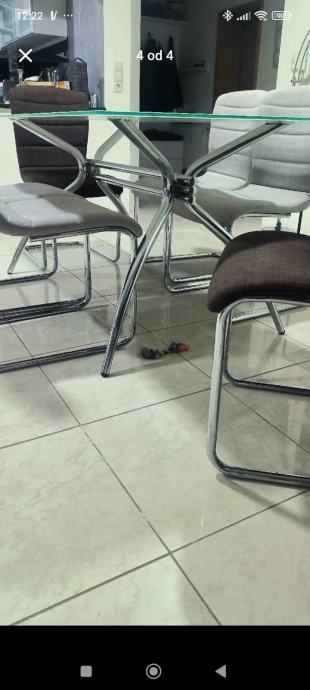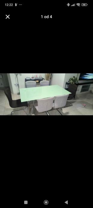 Prodaje se blagavaonski stol od kaljenoga stakla sa dodatnom jos jednom plocom koja je takodjer od stakla u boji vanilije i 6 stolica. Stolica su kombinacija 4 sive i 2 smedje. Bez ikakvih ostecenja.