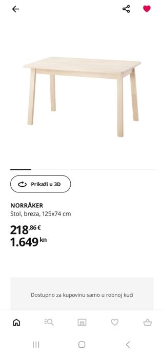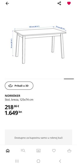 Prodajem blagavaonski stol od breze 125x74 cm, kupljen u Ikei prije tri godine. Stol je u izvrsnom stanju, kratko korišten a prodajem ga jer se više ne uklapa u prostor.